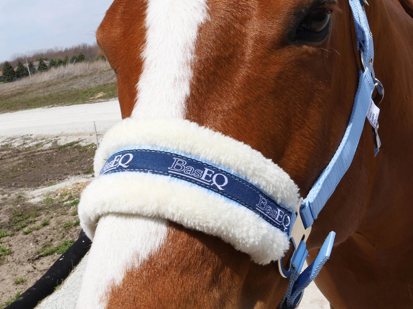 - Detailed Design: The metal clasps on our Padded Halter are tastefully crafted with a shiny silver coating. A BasEQ Blue Ribbon runs the length of this halter to provide an added touch of flair!
