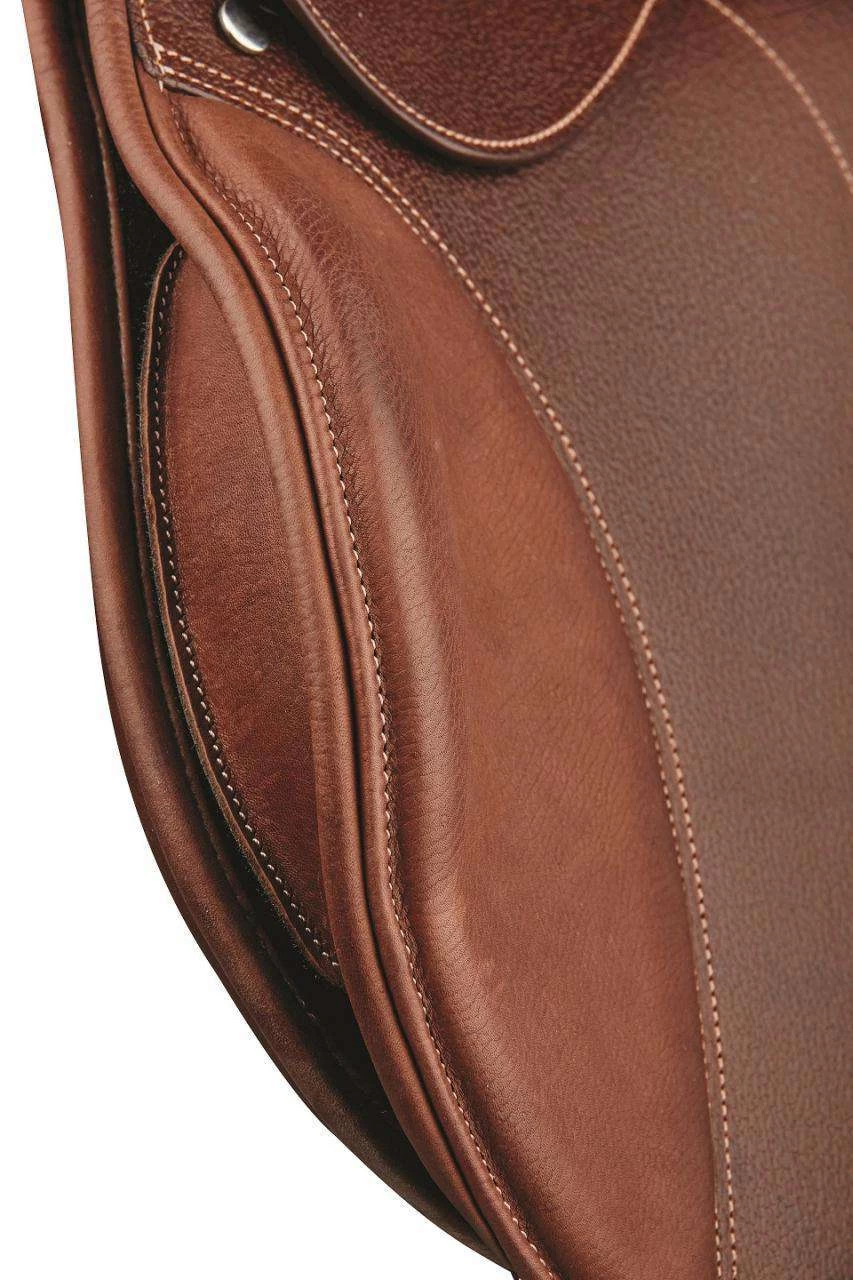 The highest quality naturally tanned Argentinian cow leather seat with durable Buffalo leather flaps with stylish contrast stitching