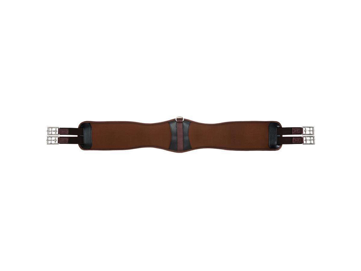 Shaped neoprene anti-chafe girth with elastic both ends. Memory foam padding for ultimate comfort. Roller buckles at each end for ease use. Center dee ring for easy attachment of training equipment