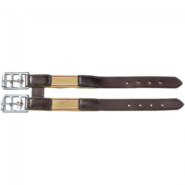 This horse girth extension is constructed of durable leather with a stretchy elastic end. The horse girth extension features heavy steel buckles and is double stitched for long-lasting durability. Keep your saddle in place while trail riding with this horse girth extension. hed.