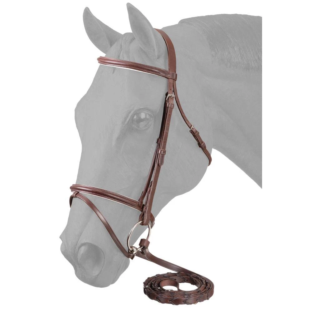 Made of premium quality bridle leather. Flash noseband and browband lined with white padding.