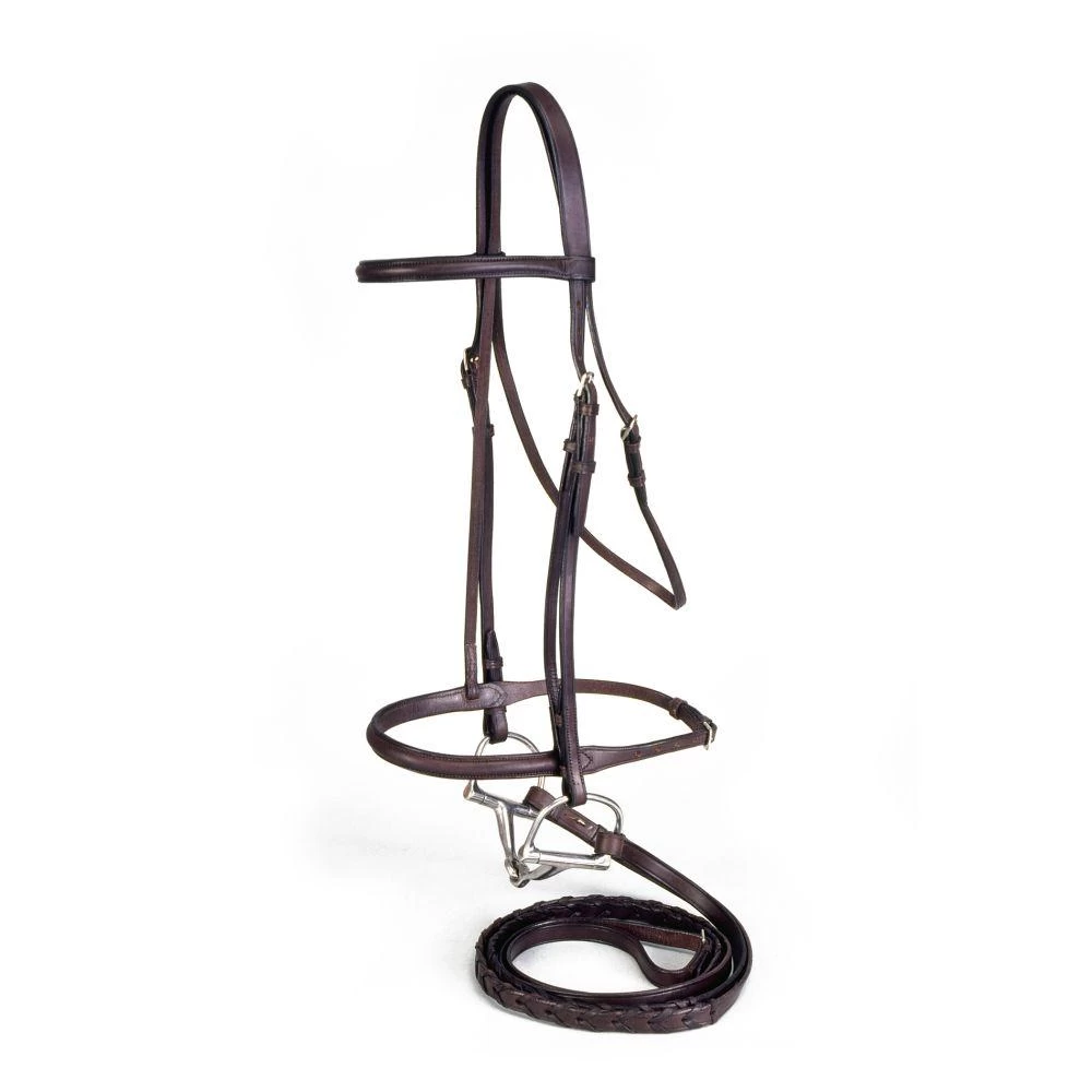 Classic styled raised browband and caveson enhances even the finest show horse’s head. Rich havana brown quality bridle leather with laced reins.