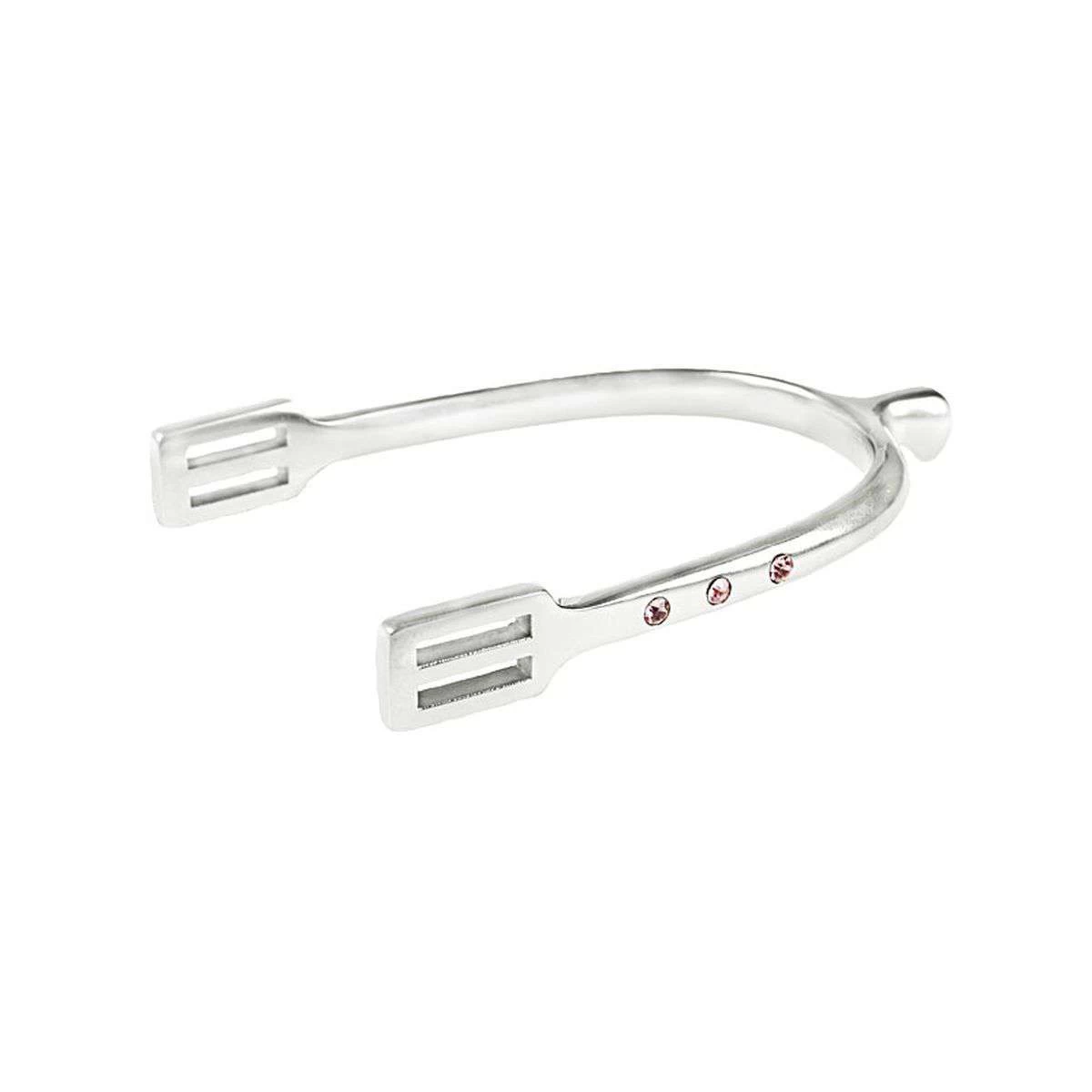Fancy knob spurs are embedded with ice pink crystals to add a touch of sparkle to your ankle. Wear these sparkly spurs when you want some added shine.