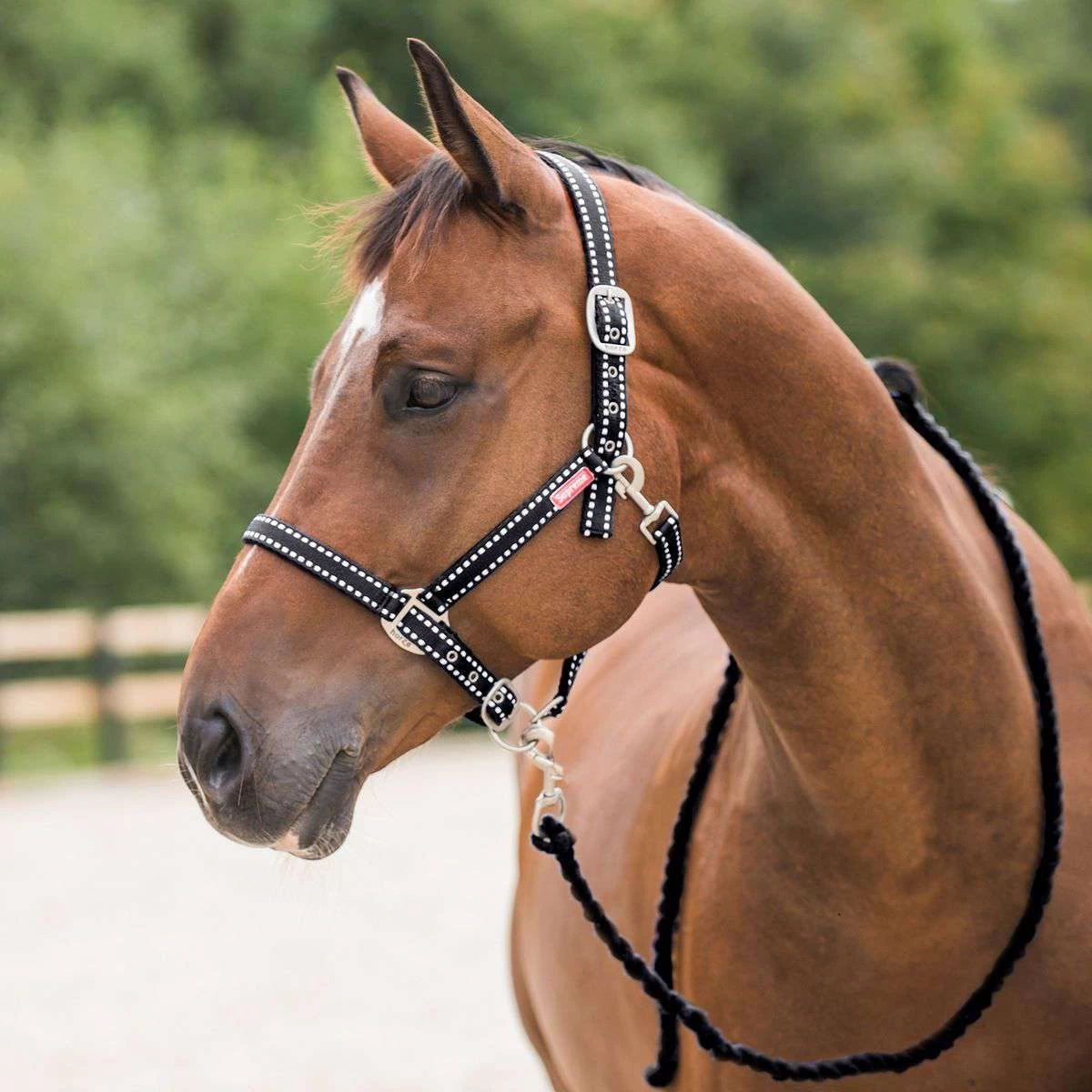 When you’re watching your budget, this halter and lead combo is a smart choice for your horse’s daily needs. This set also makes a great gift idea. The unique stitched pattern on the halter is offset by quality brushed nickel-style hardware. The matching lead is a great all purpose option for everyday use.