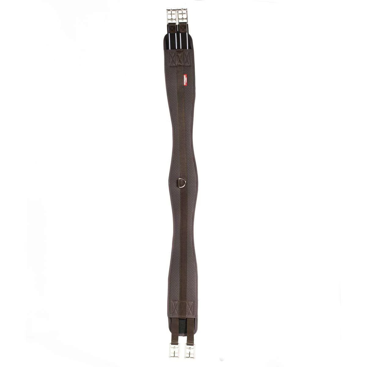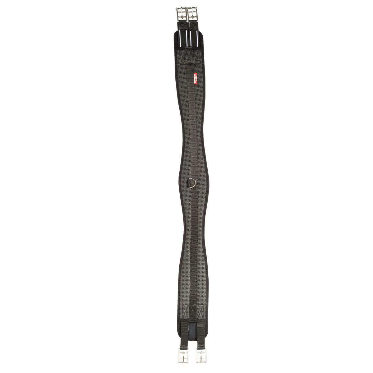 The contoured design of this soft, webbed all purpose girth offers ultimate comfort and durability. The elastic side, stainless steel roller buckles and center D-ring provide convenience and quality. The fabric is easy to clean and will maintain its great looks with minimal care.