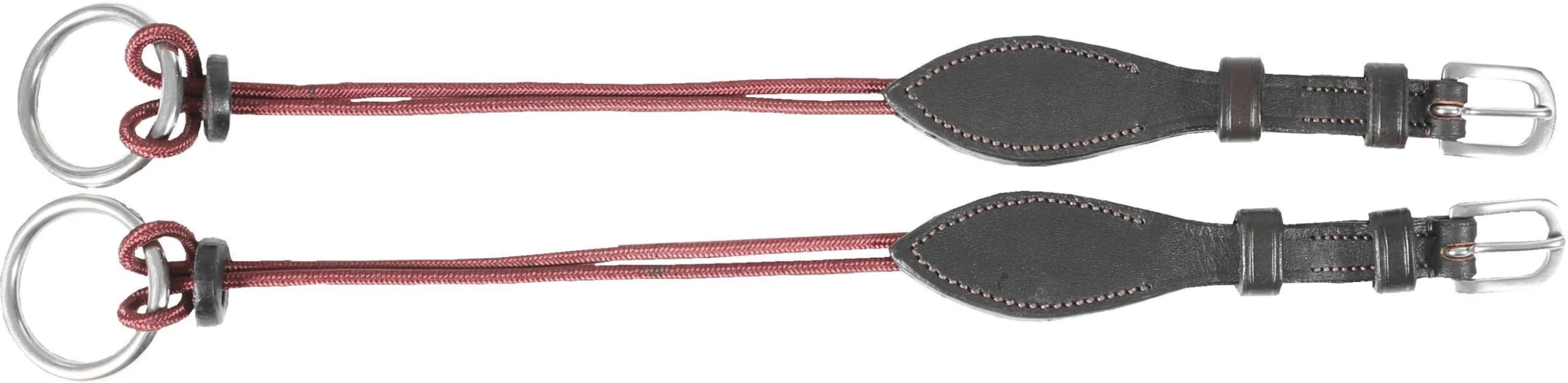 Add these gag cheek pieces to a gag or elevator bit for proper fit and elevation. Control pressure points when used with the proper bit. These gag cheeks are leather and rope with stainless steel fittings.