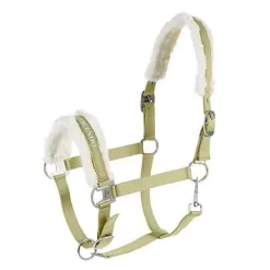 Brushed nickel hardware and strong polyester woven fabric ensure that this halter is built-to-last. An economical halter that looks rich. Soft fleece lining looks rich and luxurious on the noseband and headstall of this economical nylon halter. Strong brushed nickel hardware and snap closure at the throat are added for style and convenience.
