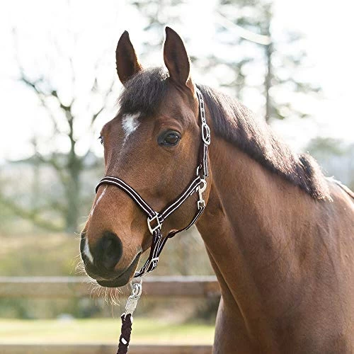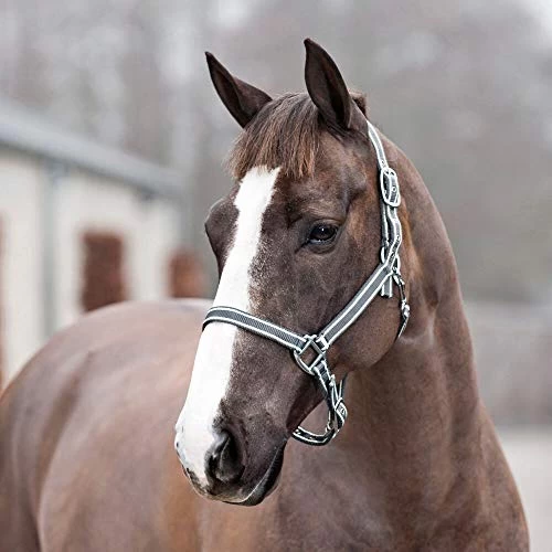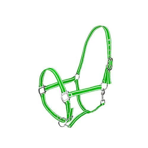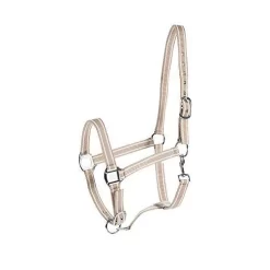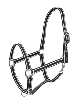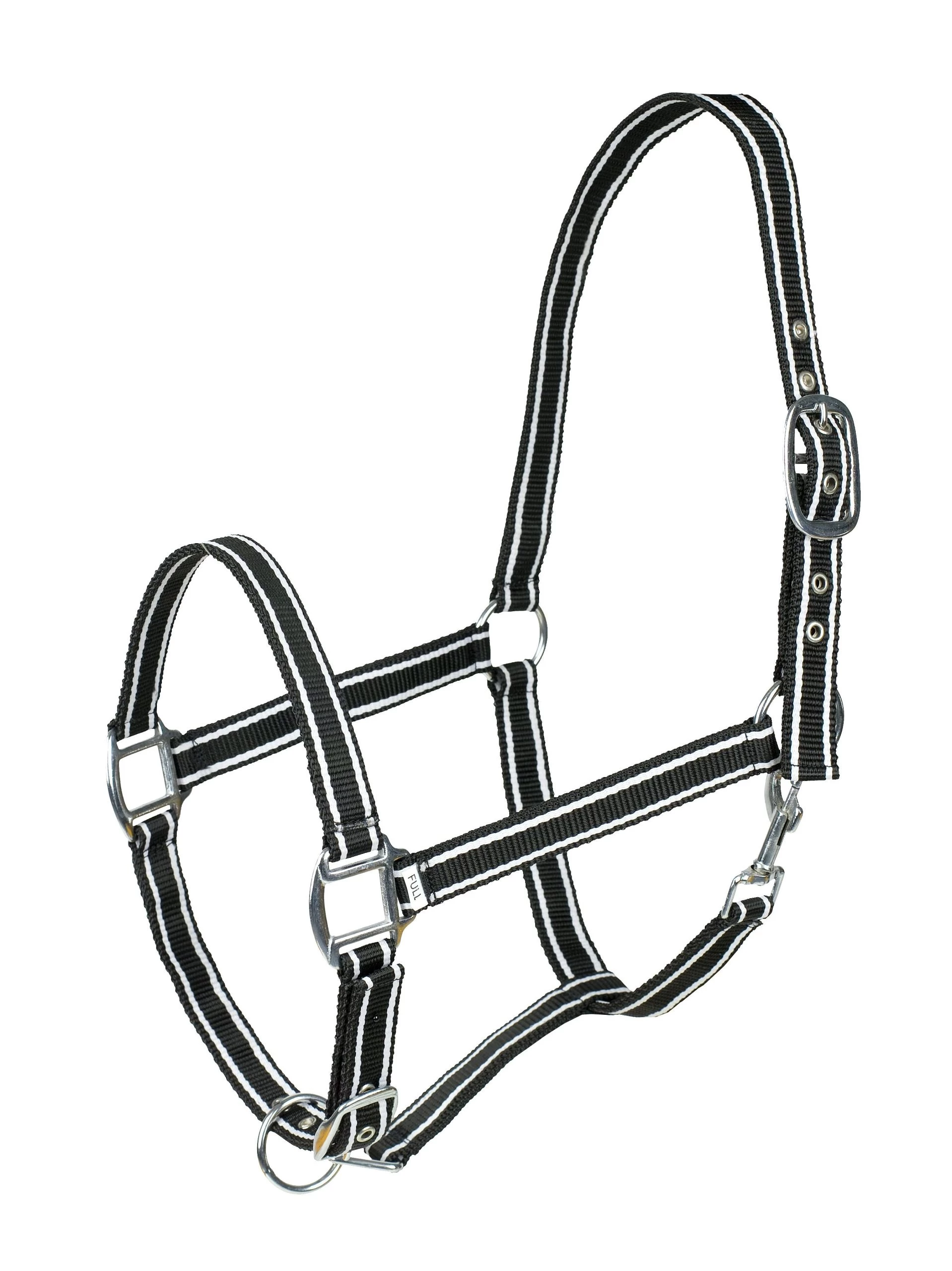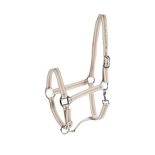 Horze Nice Striped Nylon Horse Halter with adjustable noseband and crown. Simple muzzle opening, Nickel-plated buckles. Belongs together with 22666