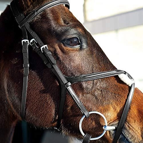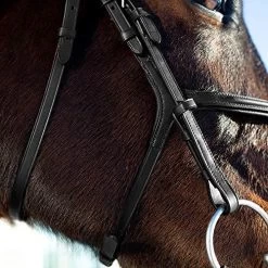 The figure 8 style of this bridle is perfect for eventing or jumping. Ergonomically-designed headstall and crown offers exceptional fit for this durable, stylish bridle. A soft, fleece-lined center disc is the focal point of the superior quality Horze Prescott Cross Noseband Bridle for eventing or show jumping. The figure 8 noseband provides just enough leverage and control for most horses while jumping and galloping. The intercontinental rubberized reins on this bridle are lined for excellent grip and control.