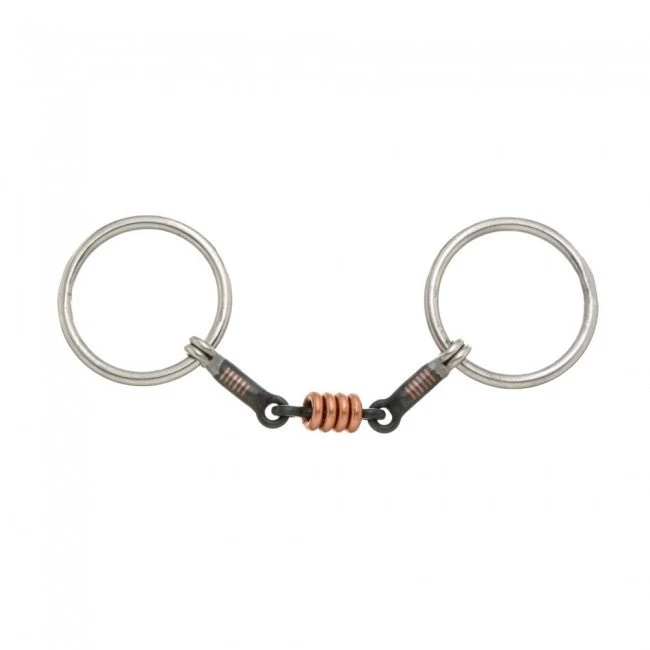3″ stainless steel futurity rings. 5″ sweet iron mouthpiece with copper inlay. The copper rollers add a sweet and sour taste for better moisture.