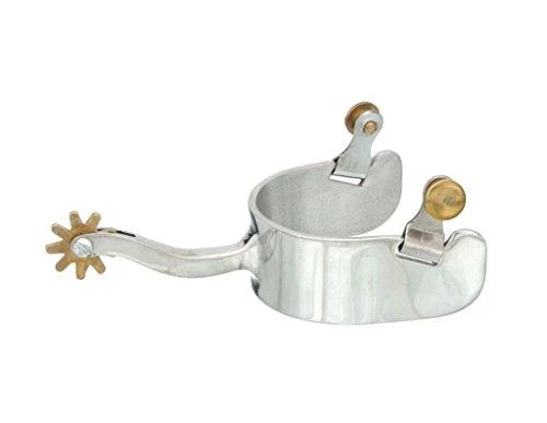 Stainless steel 1 1/4″ band. 3″ shank with brass buttons and 8 point rowel.