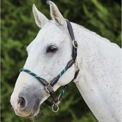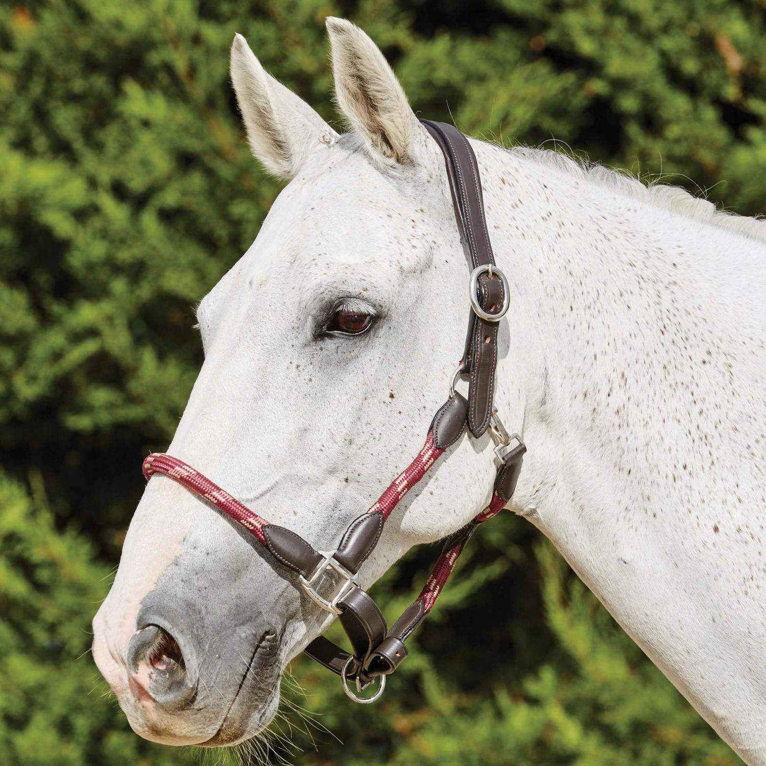 Made from quality leather. Stylish headcollar with rope accents for added control and includes nickel plated buckles. Easy adjustment under the nose and over the headpiece with quick clip throat strap.