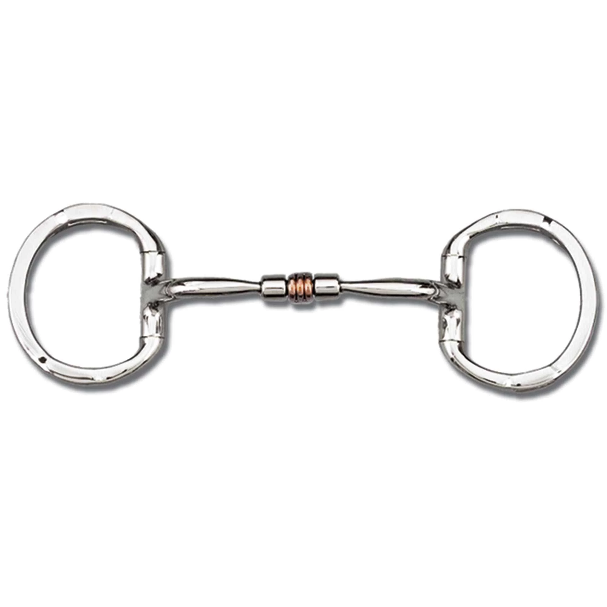 Stainless Steel Eggbutt with Hooks with Stainless Steel Comfort Snaffle with Copper Roller (MB 03, Level 1) Copper Inlay.