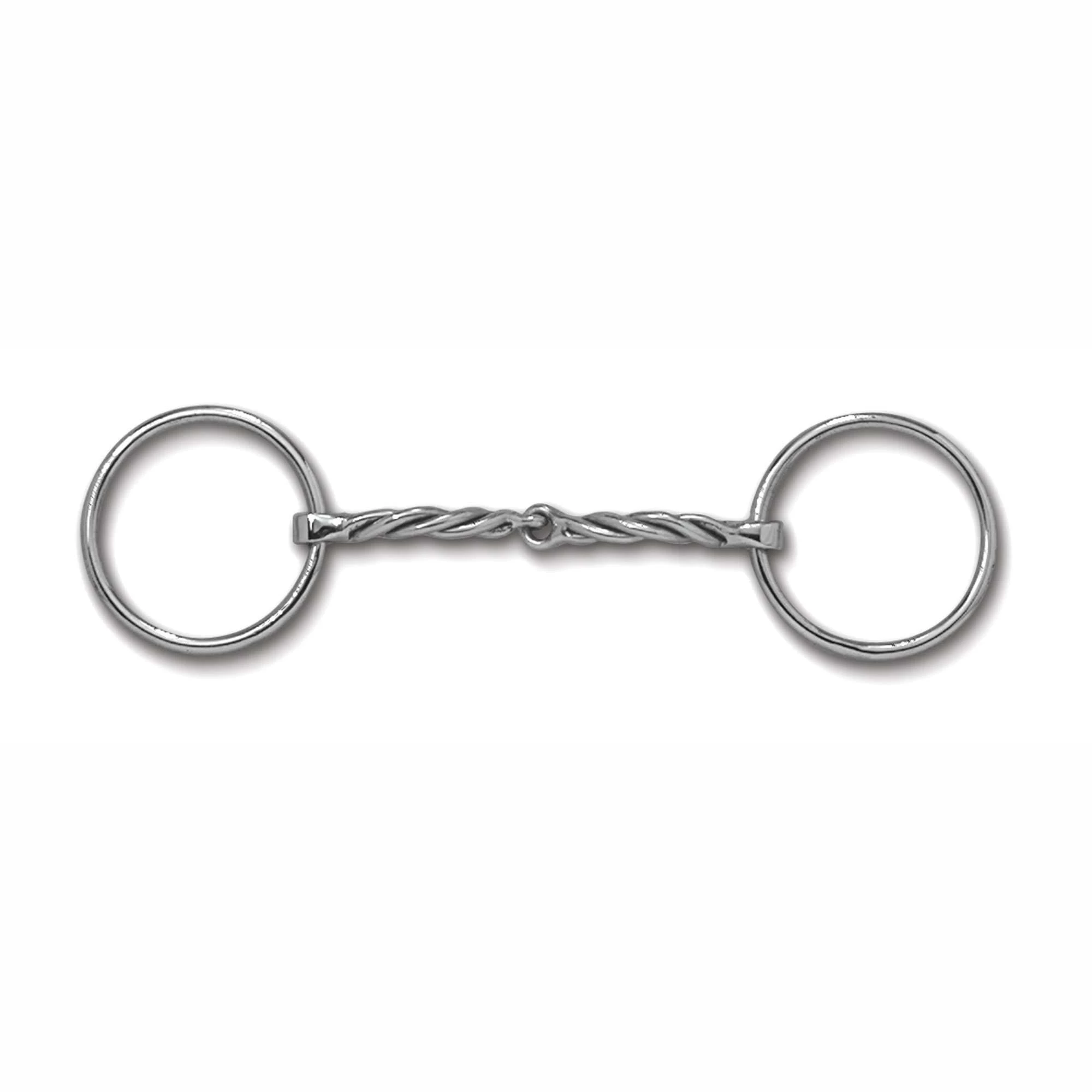 Stainless Steel Loose Ring with Sweet Iron Twisted Snaffle (MB 09T, Level 1). This mouthpiece is made of polished Sweet Iron which naturally oxidizes or rusts. Harmless to horses, it has a sweet taste and promotes salivation.
