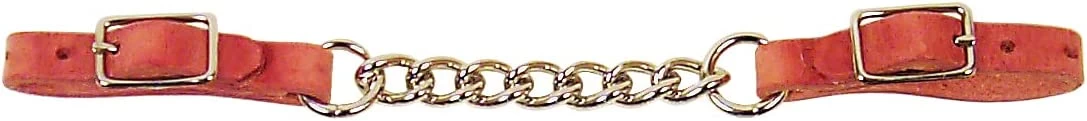 1/2″ wide harness leather ends, nickel plated chain and buckles.