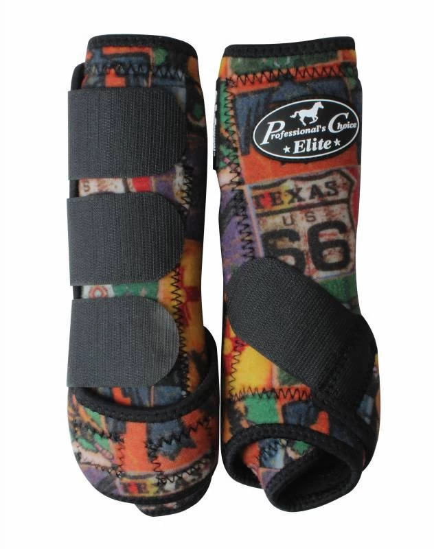 | Now with VenTECH technology, the Elite Sports Medicine Boot is lightweight and multi-layered with a ventilated neoprene exterior and UltraShock lining. Ventilated neoprene conforms to your horse, allows heat and moisture to escape, and keeps your horse cool, comfortable and performing at its best. The boot provides 360 degrees of protection, safeguarding the cannon bone, tendons and soft tissue, and is proven to absorb over 26% of energy from hoof impact. The uniquely designed suspensory strap stretches with each stride, allowing full ankle movement and helping to eliminate hyperextension of the fetlock. The distinctive angle of this strap guarantees proper application, ensuring the boot provides maximum protection. Sold in Pairs. |