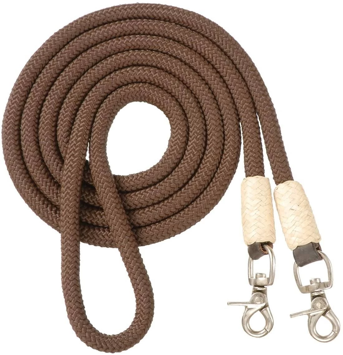 Excellent quality Royal King black cord roping reins made of heavy imported cord reins with braided rawhide and scissor snap bit ends. Heavy imported cord reins with braided rawhide and snap ends.