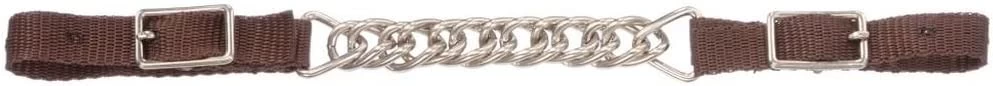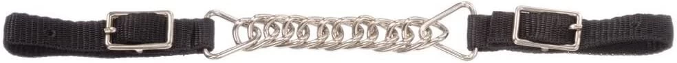 Made of tough nylon, fully adjustable end straps, nickel plated curb chain.