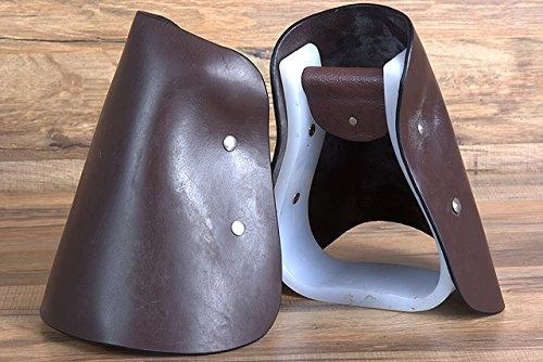 Polymer stirrup with a leather hood. Medium Brown. Sold in pairs.