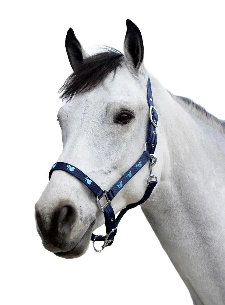 The Saxon Dove Headcollar is a stylish embroidered nylon halter.