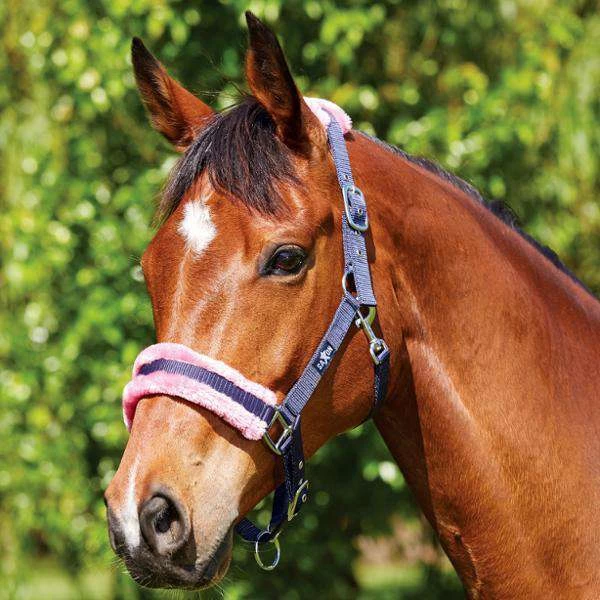 The Saxon Element Fleece Headcollar is made from durable nylon webbing with soft fleece padding on the nose and head piece to provide added comfort for your horse. Features nickel plated fittings, an adjustable nose and a trigger clip throat fastening.