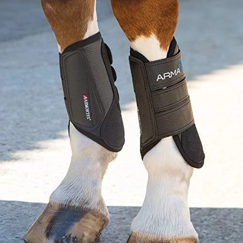 ARMA Cross Country Boots – Front Cross country boots for the professional. Designed for 360 protection without compromising performance, these stylish, contoured boots protect joints and tendons from knocks whilst your horse is going cross country. The tendon shields protect both the digital flexor tendons and suspensory ligaments from over extension of the hind legs. Padding at the front protects the legs from bruising. Quick dry High impact protection ARMORTEX abrasion resistant strike pads Breathable cooling system Contoured superior fit Durable Lightweight and flexible