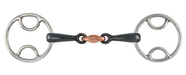 This bit allows mild leverage and helps with control. The sweet iron and copper mouthpiece aids in salivation.