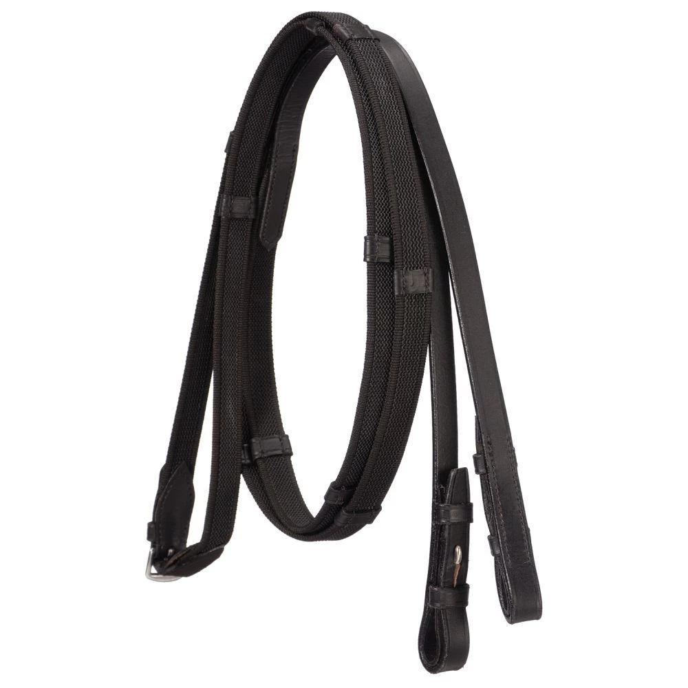 These unique 7/8″ web reins have a rubber cord woven into the web. This rubber cord will never slip from your hands and offers the rider the most secure grip ever.