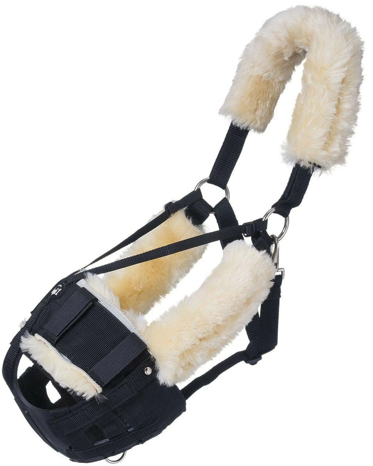 Made of a dense pile, premium sheepskin with natural leather backing, this kit contains a crown, two cheeks, and a nose to add cushioning and eliminate rubbing in the sensitive areas for your horse while wearing a muzzle.