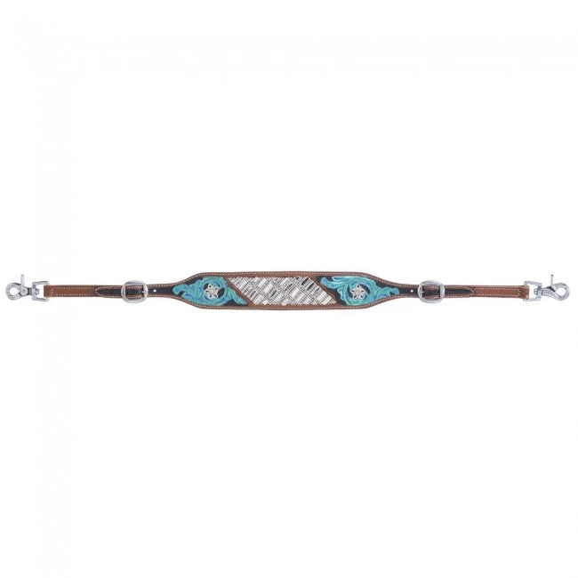 The Ashton Collection wither strap features medium oil leather with hand painted floral details, clear crystal embellishments, and black reptile print accents.