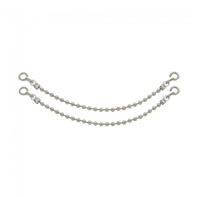 Long stainless steel ball rein chain featuring hooks on each end. Helps to add sensation in the horse’s mouth.