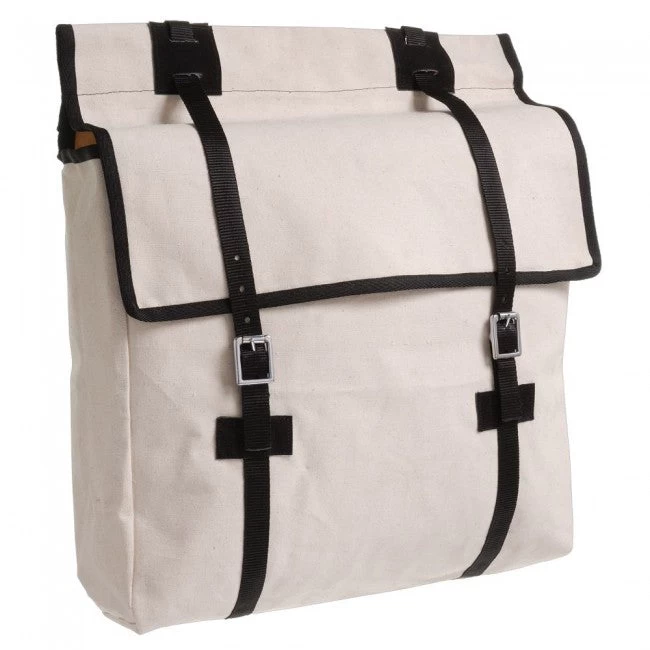 Strong canvas panier bag for use with pack saddle. Can also be used with regular riding saddles as well. Nylon straps with adjustable buckles for closing and securing pack to saddle. 20” x 18” x 5”. Sold each.