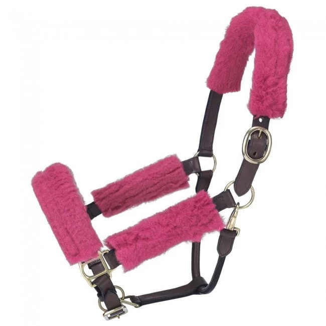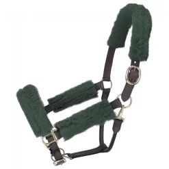 Sheepskin-like material. The kit contains a slip-on crown, 2 Quick Grip” cheek pieces, and a Quick Grip” noseband. 4 piece fleece set.