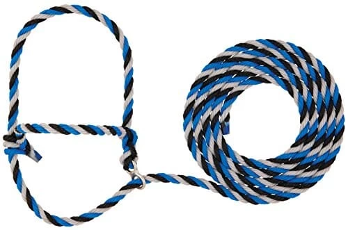 At first glance, this may look like a typical poly rope breaking halter. Upon closer inspection, youll see special nickel plated hardware designed by Kirk Stierwalt that allows for quicker pull-and-release action to help prevent swollen jaws often caused by the slower release of conventional breaking halters. This unique hardware also helps prevent the poly rope from rubbing together for easy sliding action while still preventing the halter from slipping off. The pressure points and easy-slide action of this halter simulate the performance of a show halter and chain so your calf gets used to the feel of a show halter sooner. Lead measures approximately 7′ long.